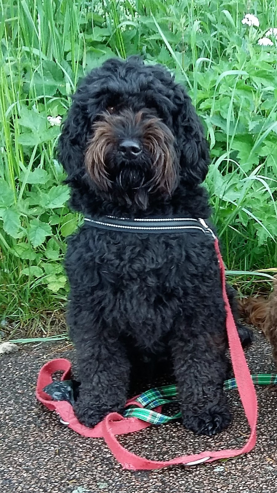 Indy-Rose is een medium teefje met een zwarte curly fleece vacht. Indy is de clown van het stel.
