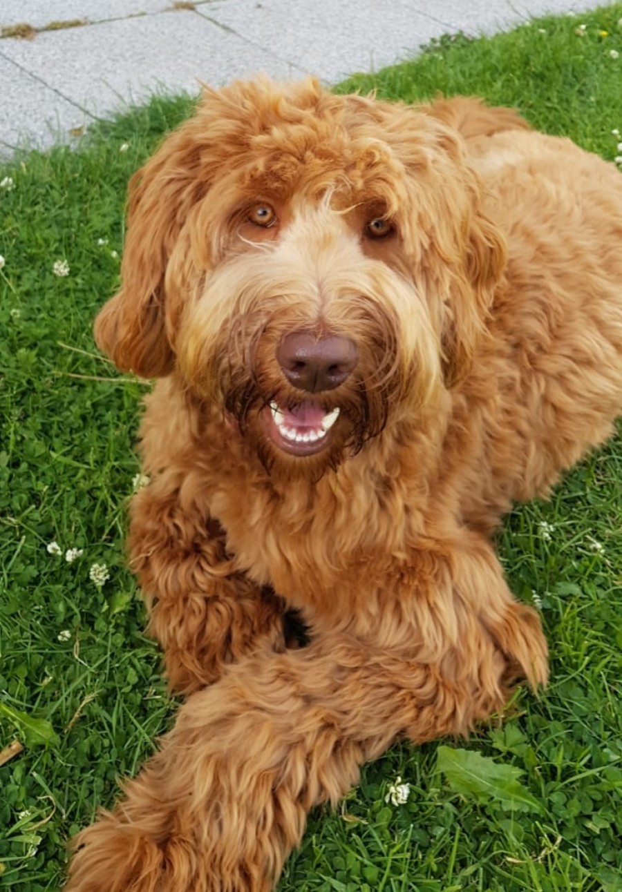 Onze prachtige goudharige Jentl heeft een gladde wavy fleecevacht. Jentl is een vrolijke, zachtaardige dame met een rustig karakter. Ze vindt het heerlijk om bij je te zijn en vooral om 's-avonds op schoot te liggen. Ze beseft niet dat ze eigenlijk best groot is voor een schoothondje. Koude voeten zul je niet snel hebben. Jentl houdt ze wel warm door er het liefst bovenop te gaan liggen.