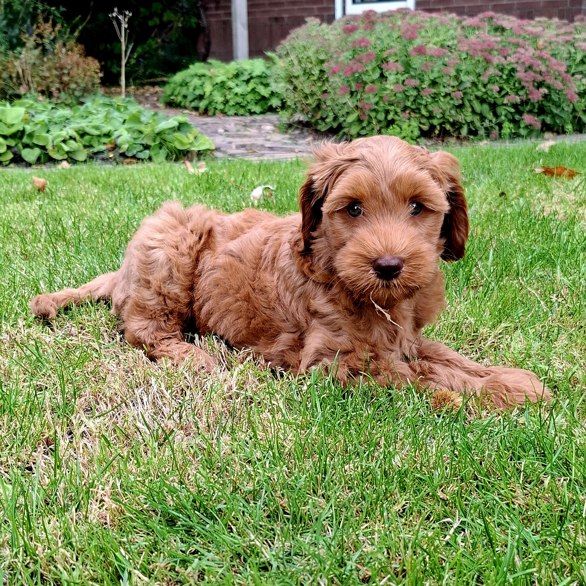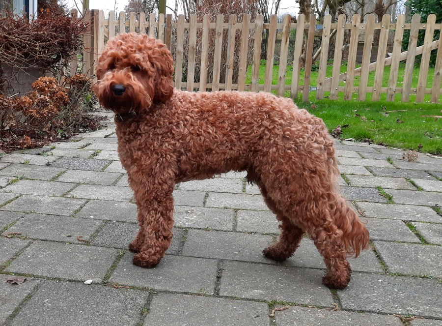 Hier is onze prachtige aanwinst Cooper met een rode wavy fleece vacht. Hij heeft een heel vriendelijk en open karakter en vindt het heerlijk om met andere honden te spelen en door mensen geknuffeld te worden. 'S-Avonds ligt hij het liefst op schoot. Hij geniet bij zijn geweldige gastgezin die lange wandelingen met hem maken.
