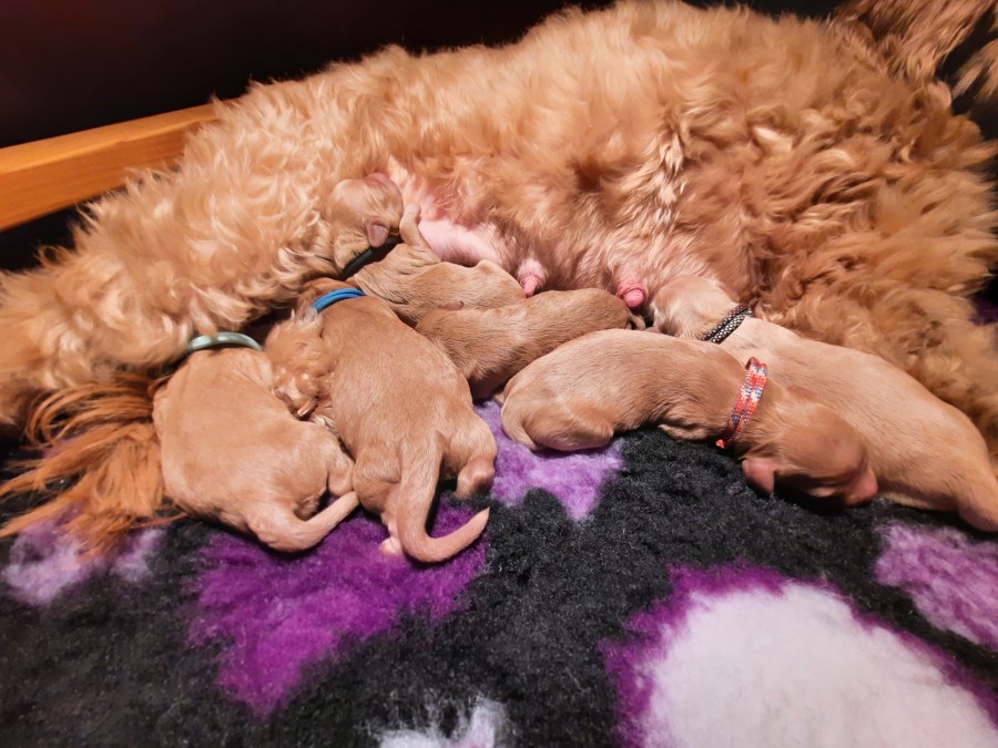 Miley en Cooper zijn trotse ouders geworden van rode/apricotkleurige pups.